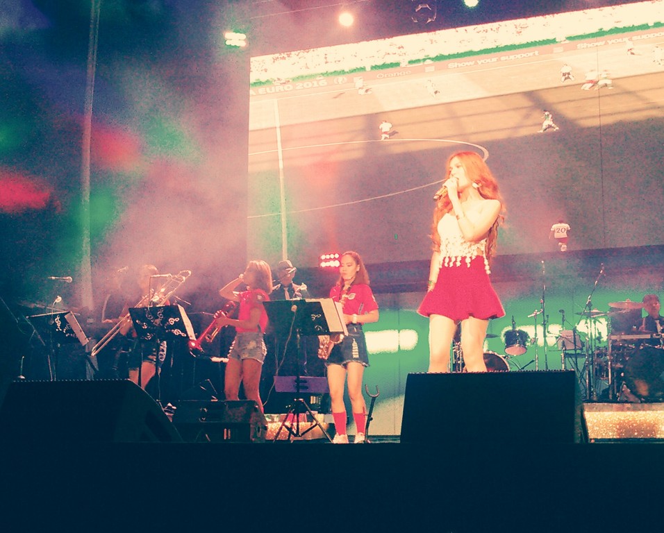 女子のブラスセクション、バンドの演奏もハンパのないプロの演奏。